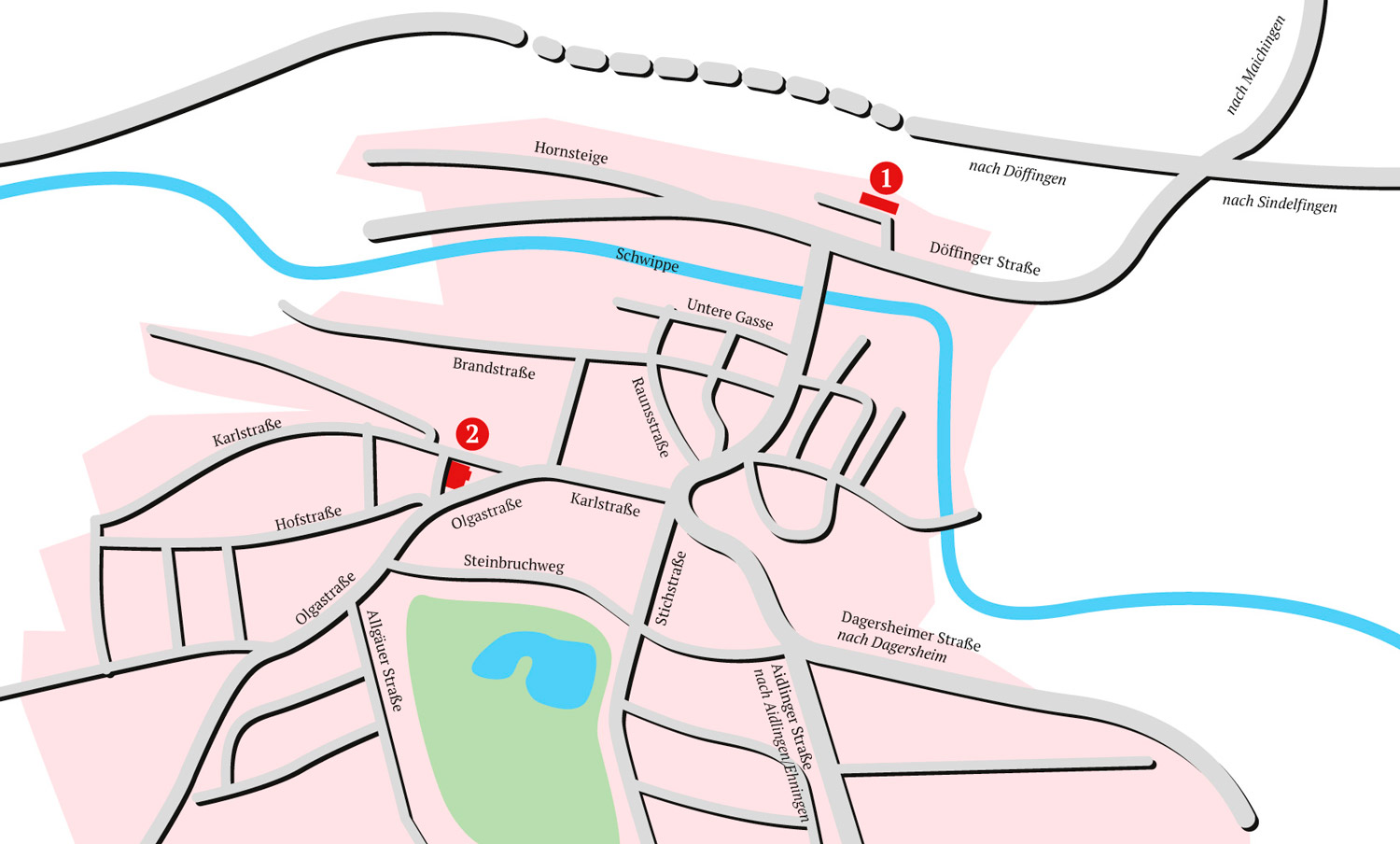 über die A81 Ausfahrt Böblingen-Hulb/ Sindelfingen-West. Danach rechts ab, geradeaus bis Ortseinfahrt Darmsheim.